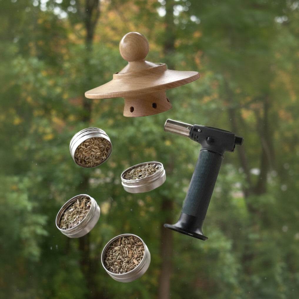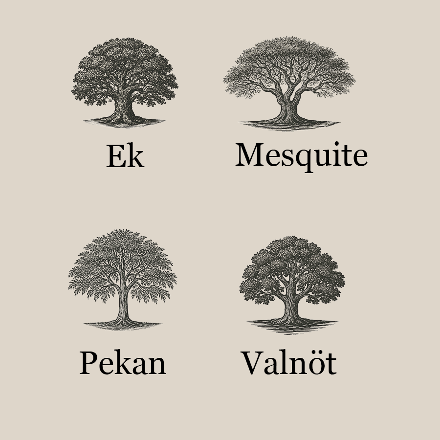 I kittet får du rökare, en brännare och 4 träslag. Butan ingår inte, men kan enkelt köpas på till exempel Clash Ohlson, eller på matbutiker som ICA.